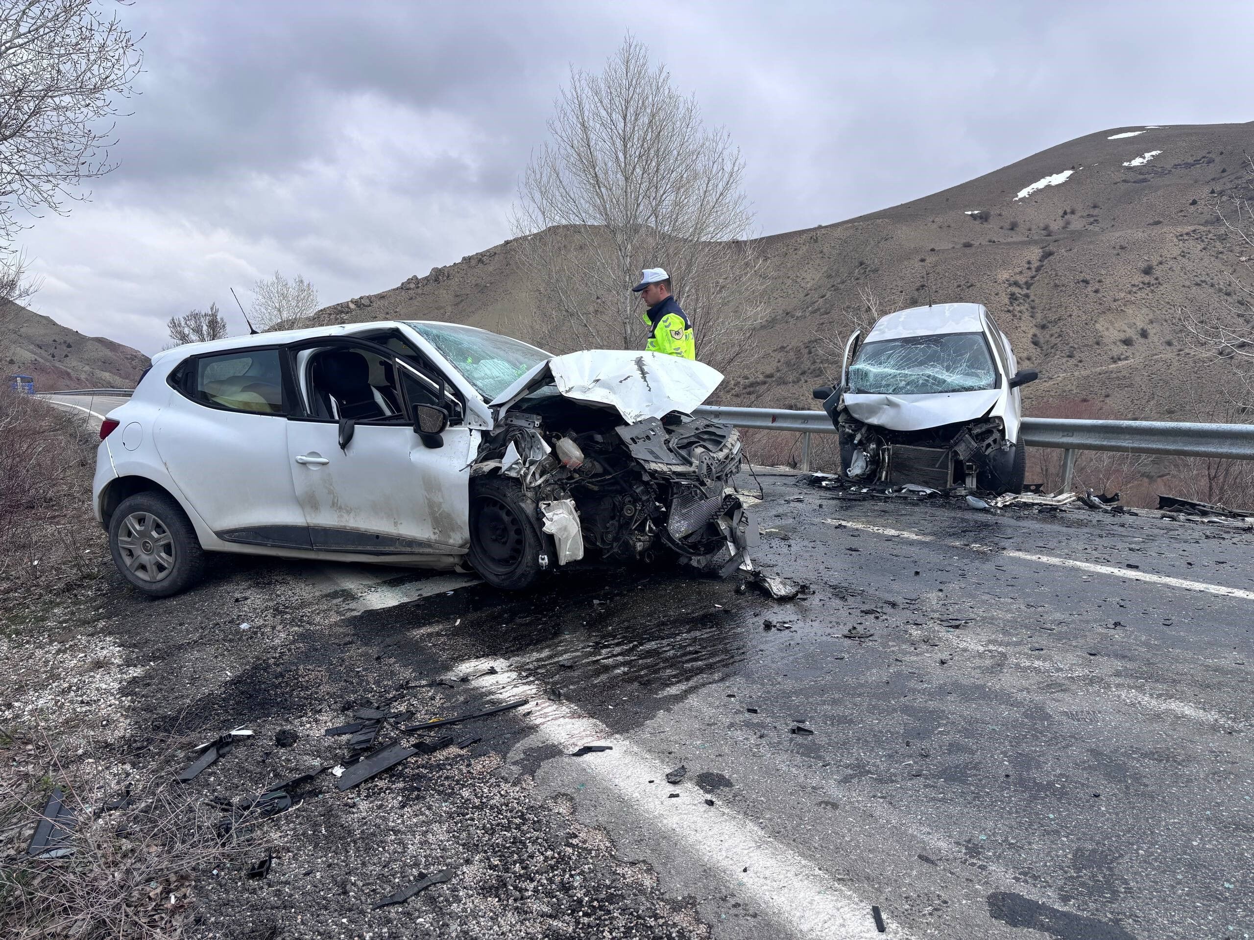 İki araç kafa kafaya çarpıştı