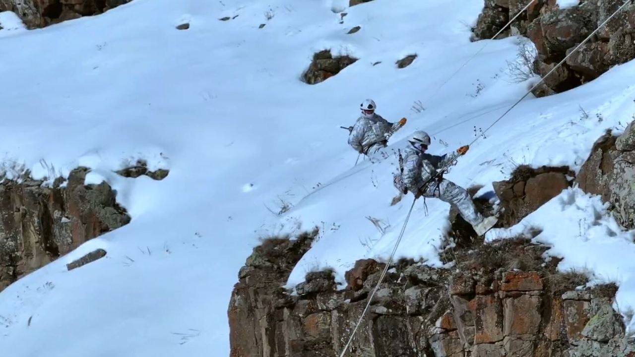 Mehmetçikten karda dağcılık eğitimi